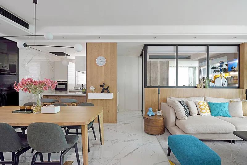 客厅和玄关之间可以装室内窗,室内窗的存在,可以从客厅、餐厅、厨房等空间引进光线,破解昏暗,一进门就能感受到舒适的家居氛围。